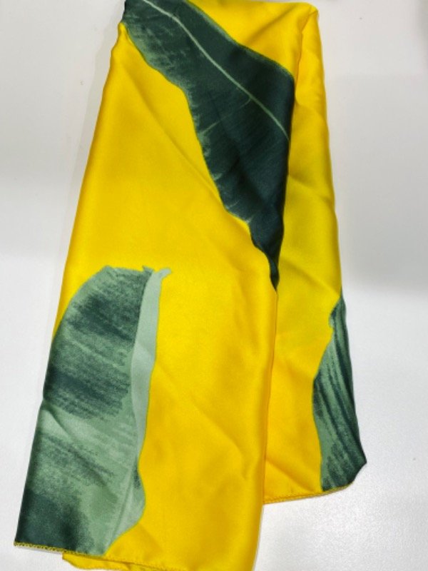 Pañuelo de seda grande amarillo con hoja 410